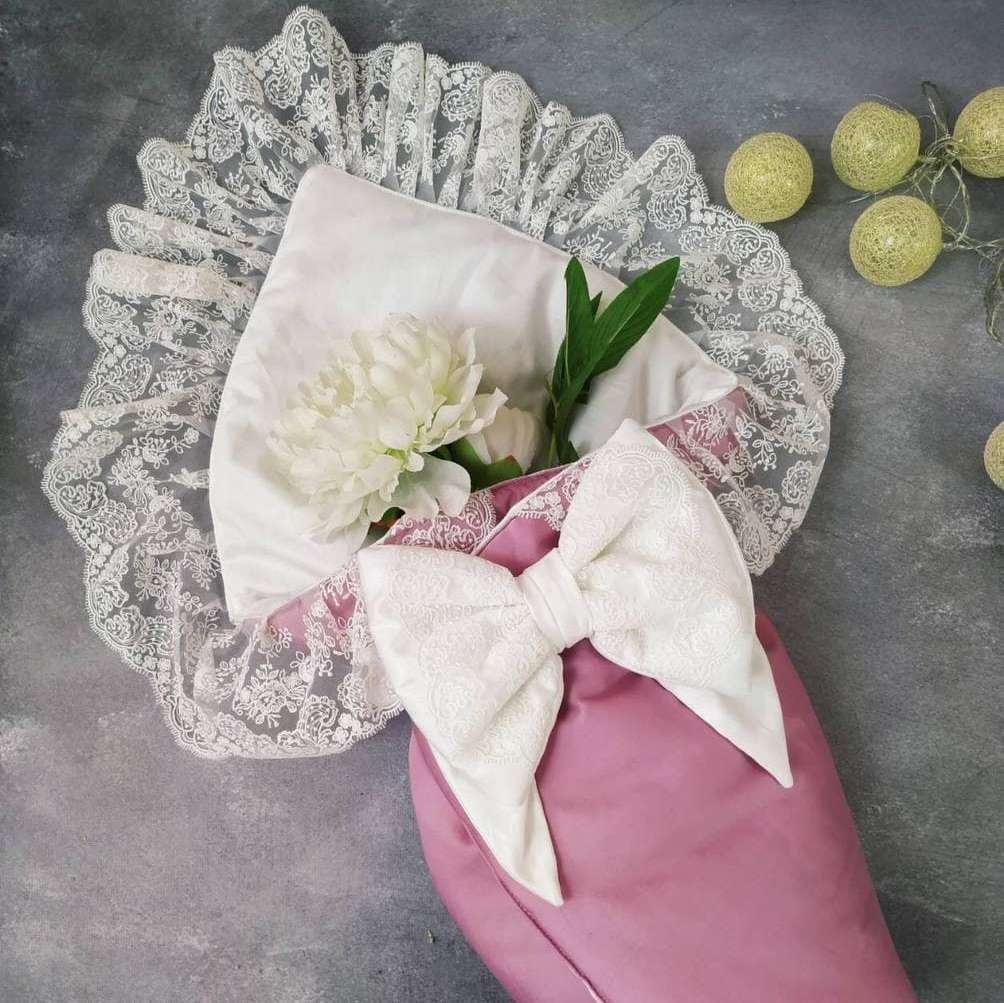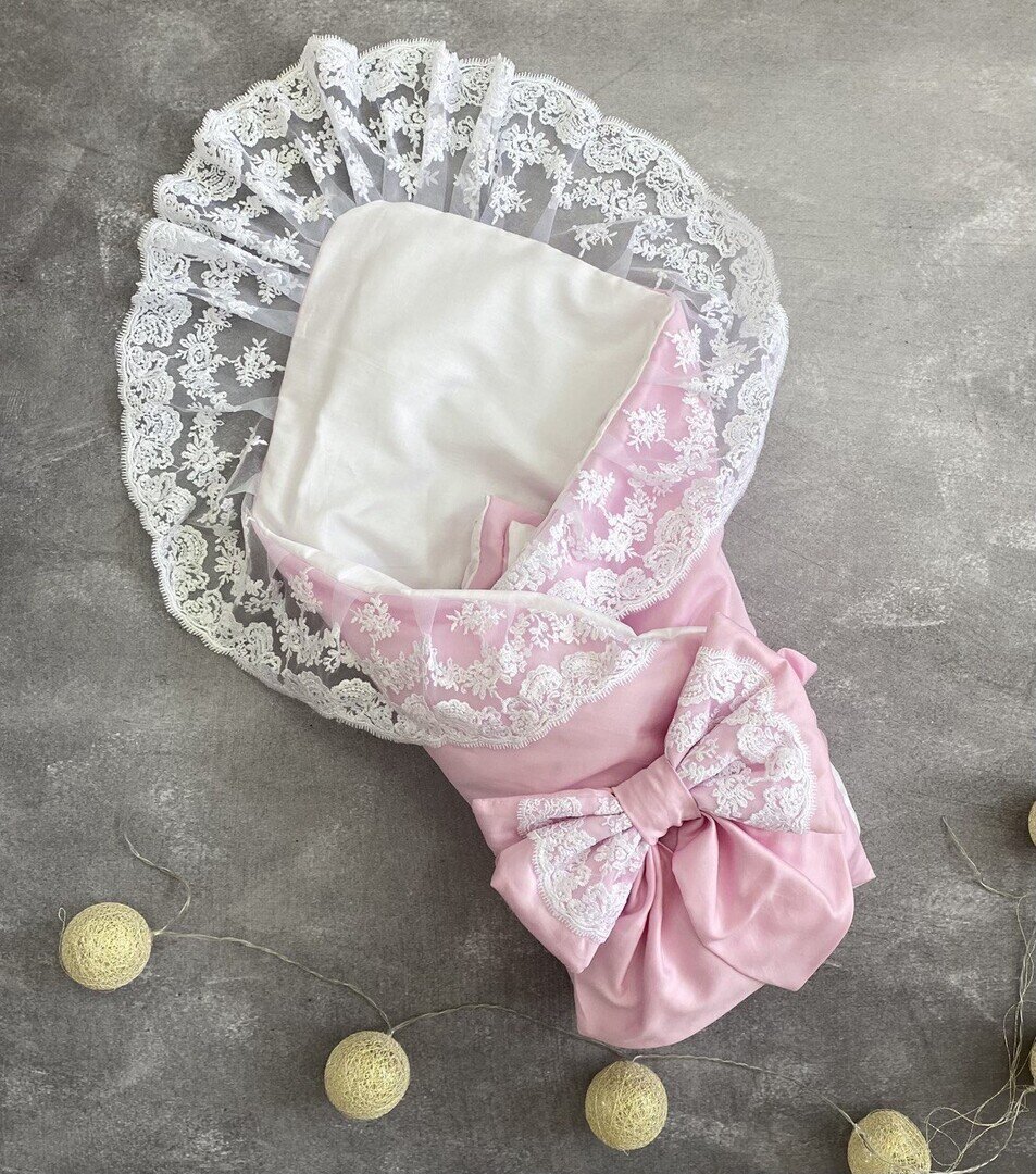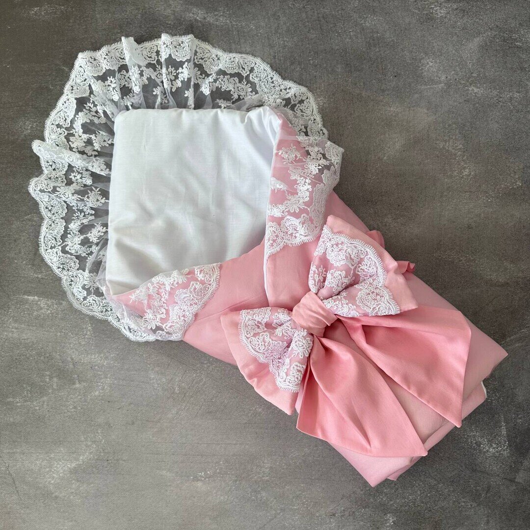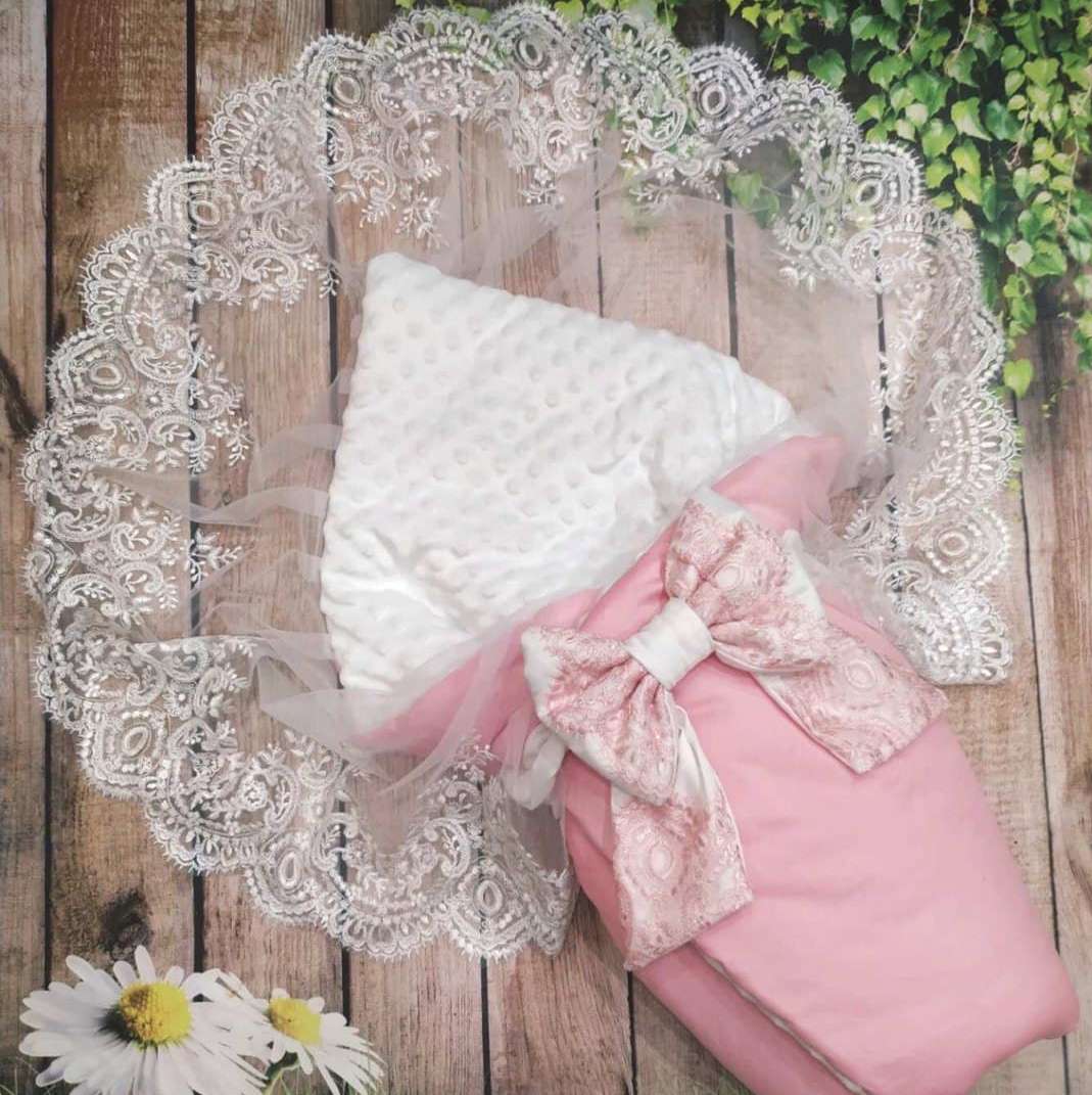 Святковий конверт-ковдра з мереживом 2 ряда (ніжно-рожевий) 34314