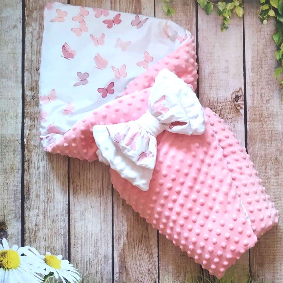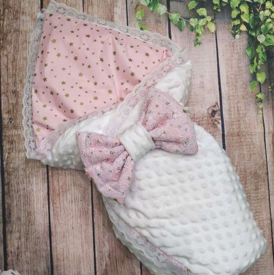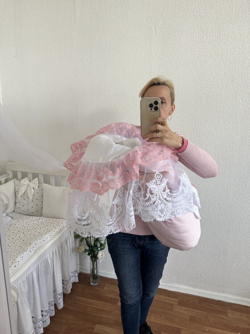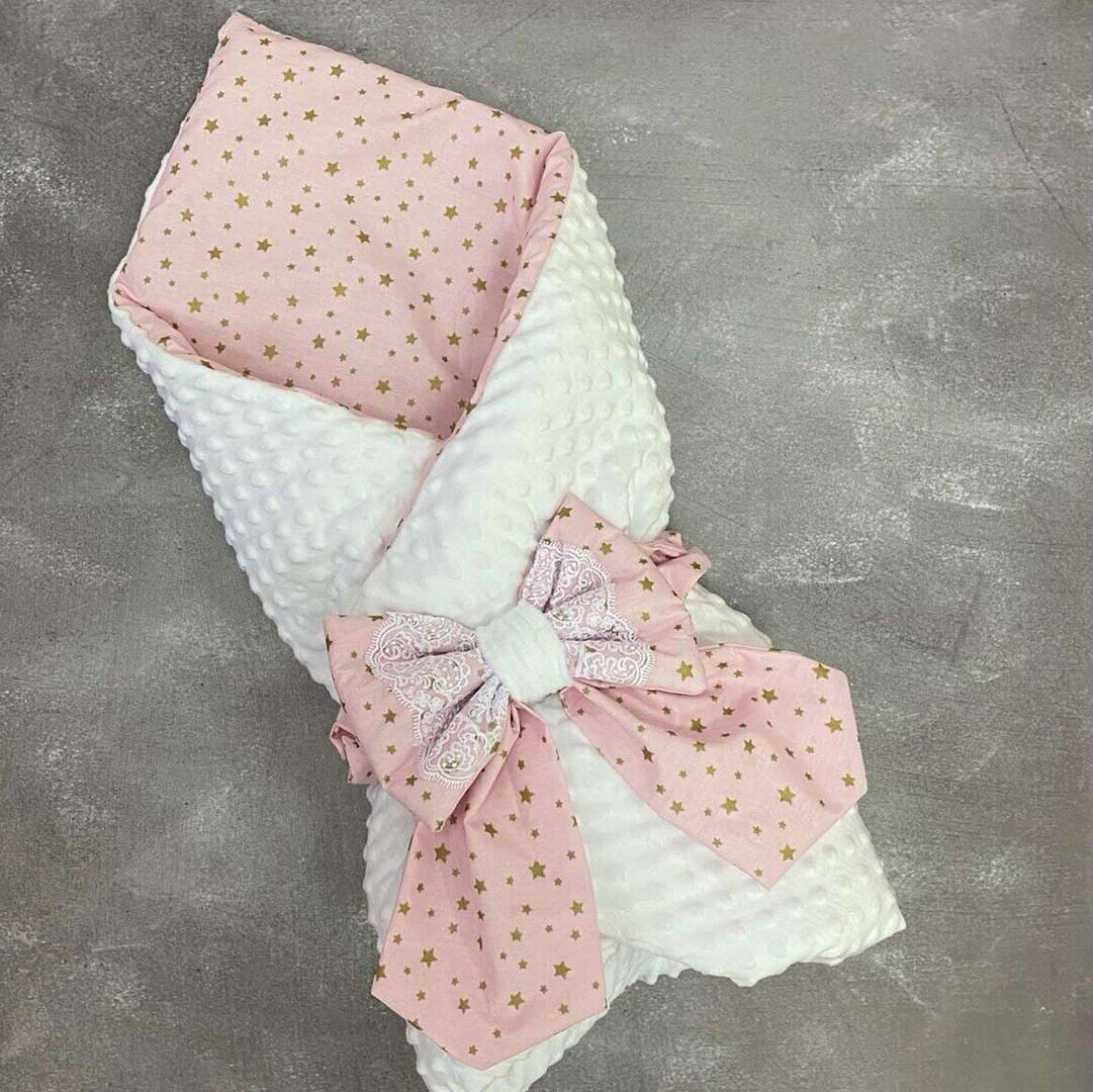 Святковий конверт-ковдра з мереживом 2 ряда (ніжно-рожевий) 34314