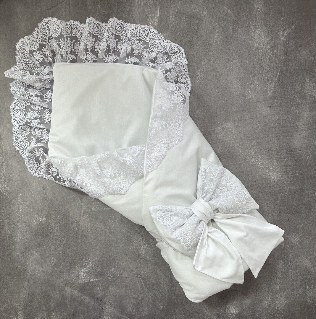 Конверт-ковдра білий з мереживом 1 ряд